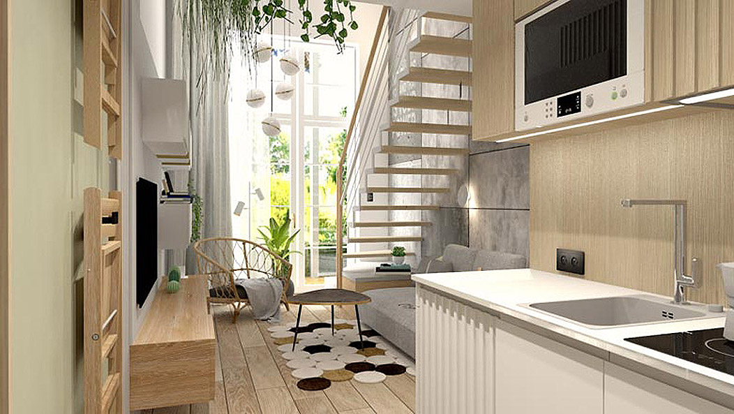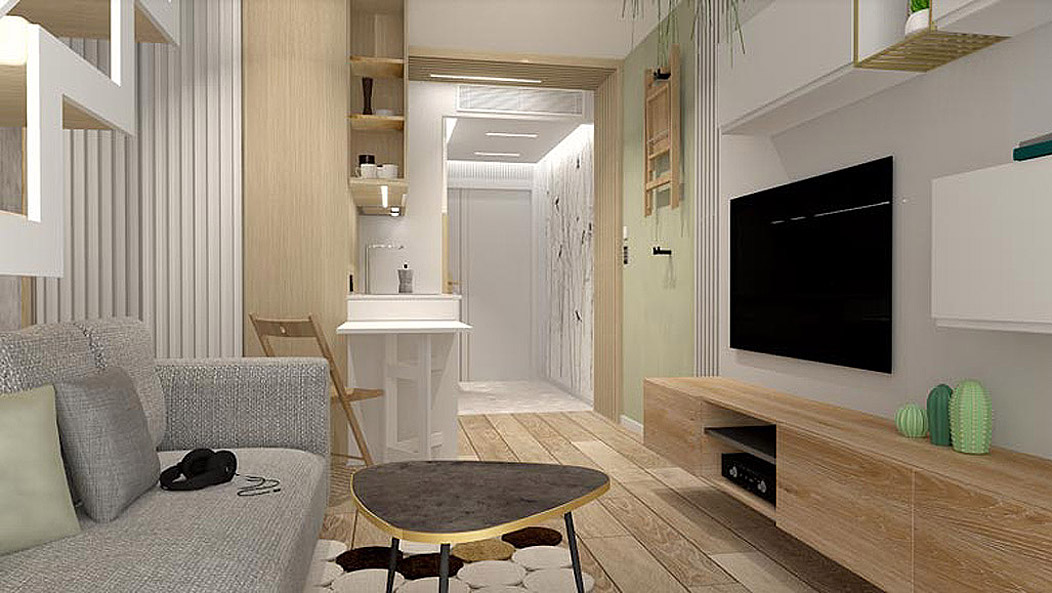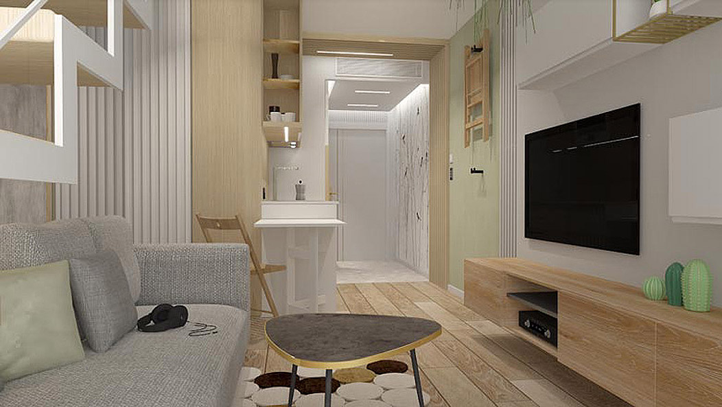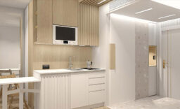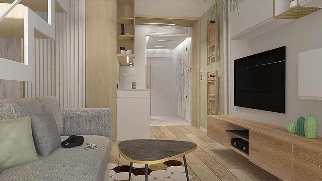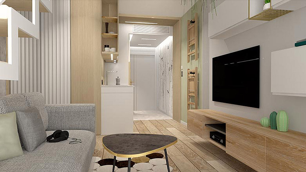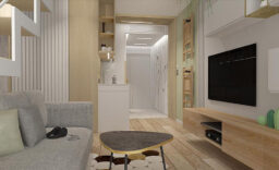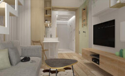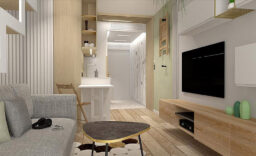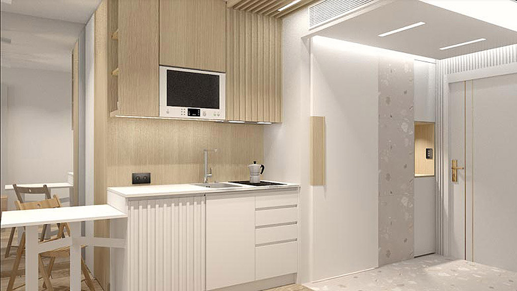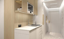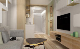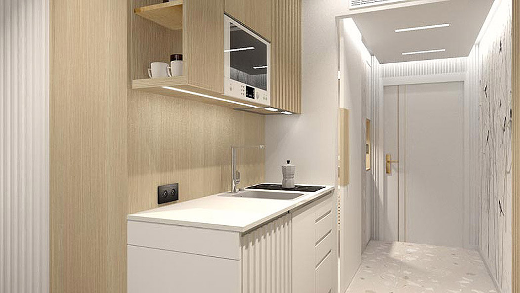 Air-conditioned, modern, high-standard studio micro-apartment. Room with kitchenette and bathroom, finished to a high standard. The living area has painted walls, laminate flooring, and a fully equipped bathroom (shower cabin, sink, mirror, toilet). Access to the premises via a magnetic card.
